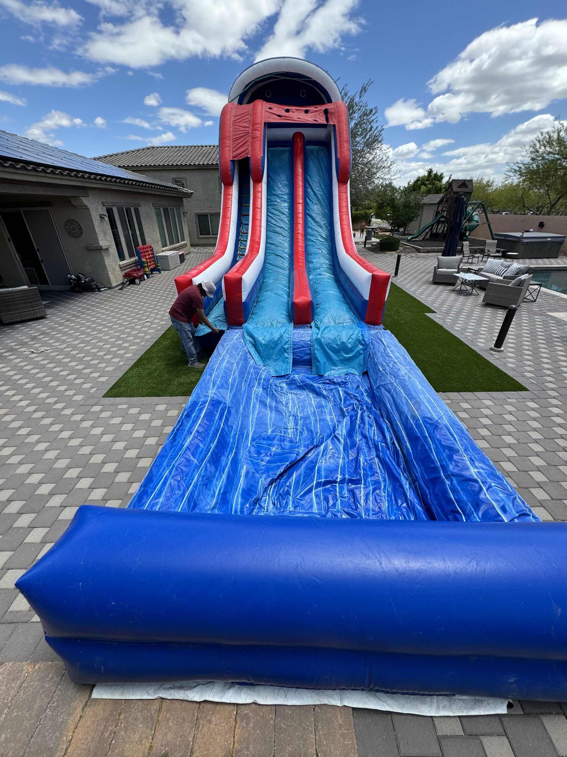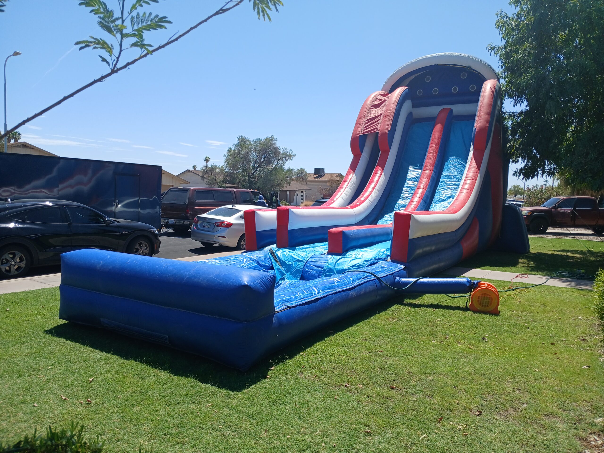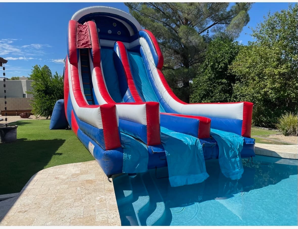 Ready to make a splash of monumental proportions? Reserve the 27 ft Patriot Water Slide with Pool now and let the festivities begin. Immerse yourself in the thrill of sliding, experience the rush of the pool, and create moments that will be cherished for years to come. Your ultimate aquatic adventure awaits – dive in and make a splash like never before!